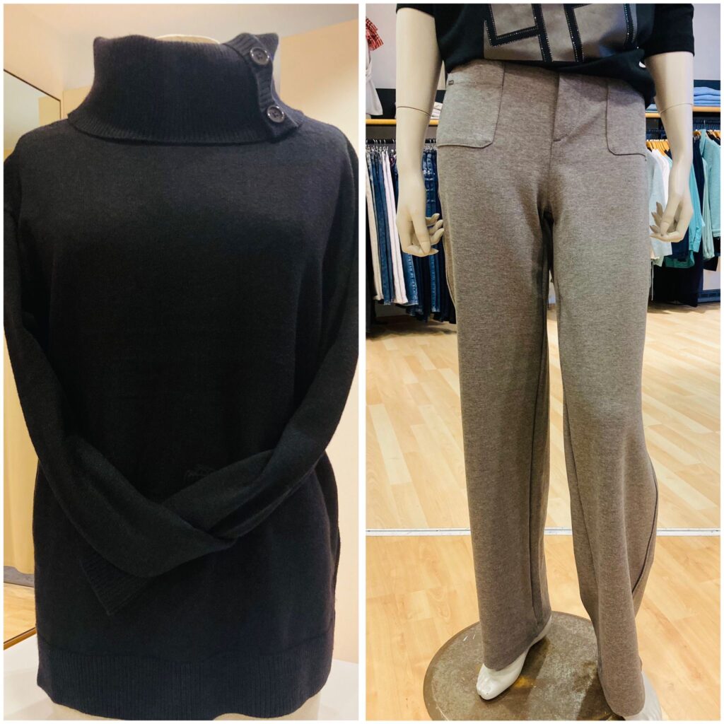 Mit dieser Kombination aus Jerseyhose und Pullover gelingt es, ein modisches Statement zu setzen, das gleichermaßen lässig und anspruchsvoll wirkt.